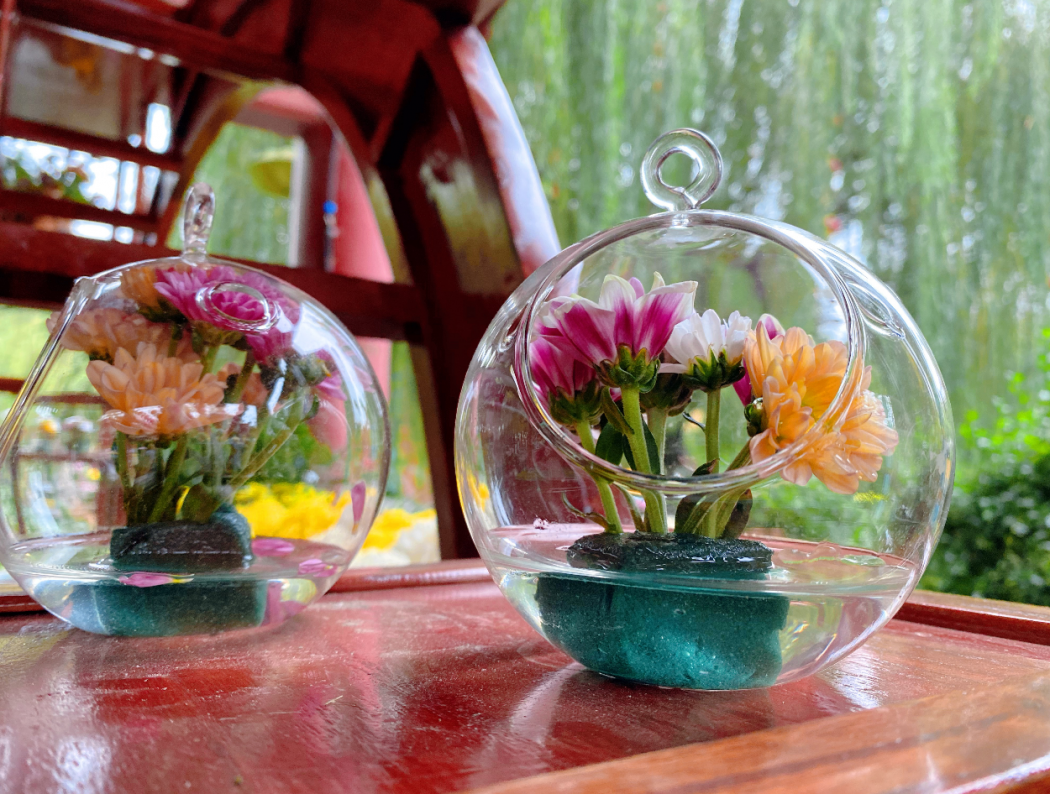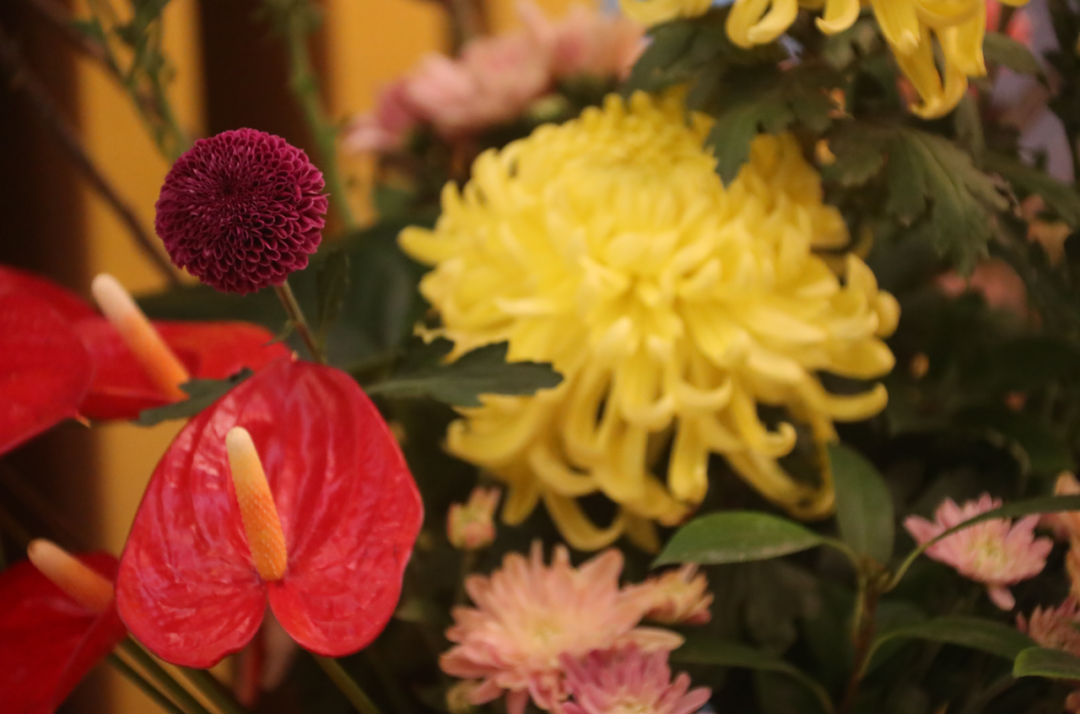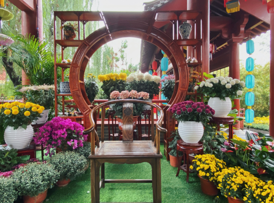 特别是中国馆,利用灯展现有展架,运用独本菊和菊花插花的形式表现出中国传统菊花品种和插花艺术,满满的中国风!