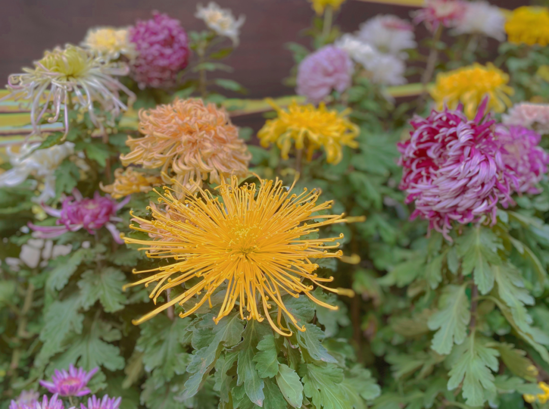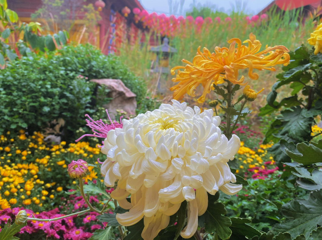 其中国外切花品种80余种,新增10个品种,国外大菊品种100余种,国外小菊品种50余种,国内传统菊花品种500余种,共计约800个菊花品种。其品种之繁多实属前所未有、让人大呼过瘾,且每一盆菊花都经过精心培育和设计,可谓是“千菊百态齐斗艳,姹紫嫣红竞风采”,让人流连忘返!