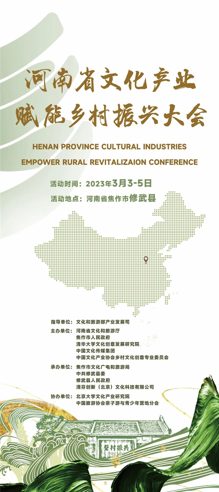 文化和旅游部、教育部、自然资源部、农业农村部、国家乡村振兴局、中国工商银行等国家部委领导,河南省文化和旅游厅、教育厅、自然资源厅、农业农村厅、乡村振兴局、国家开发银行河南分行等河南省直部门领导和各地市领导将出席本次会议。河北省文化和旅游厅领导也将参会交流,同时来自江西、广东、贵州等省份所辖市县的有关领导还将分享各地有关案例。