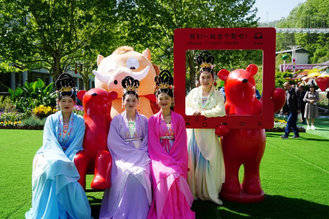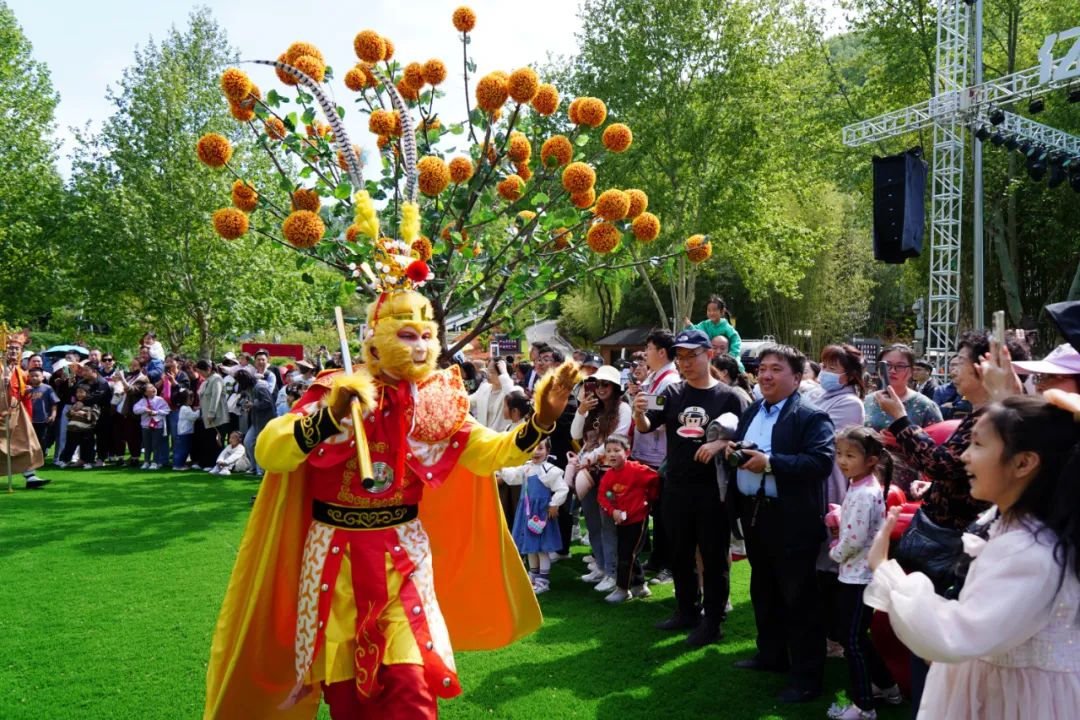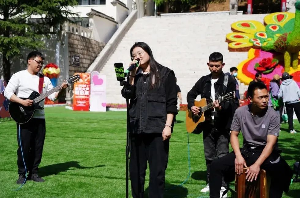 花田最民谣,浪漫的的音乐氛围,熟悉的民谣旋律,娓娓道来的动人歌声,为现场游人带来了一段浪漫的时光。除了民谣,景区还准备了《飞天》、《人间烟火》、《洞天西游》、人偶互动等精彩的节目,游客朋友不仅可以赏花,还能观看节目表演,开心又有趣!